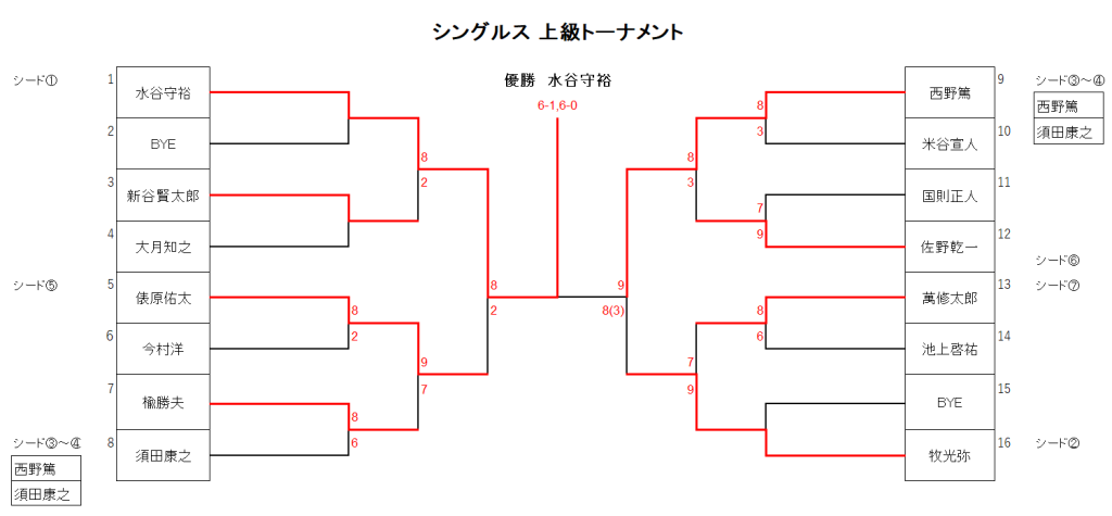 上級リーグ ・8ゲームマッチ:セミアドバンテージ、8ゲームオール後7ポイントタイブレーク