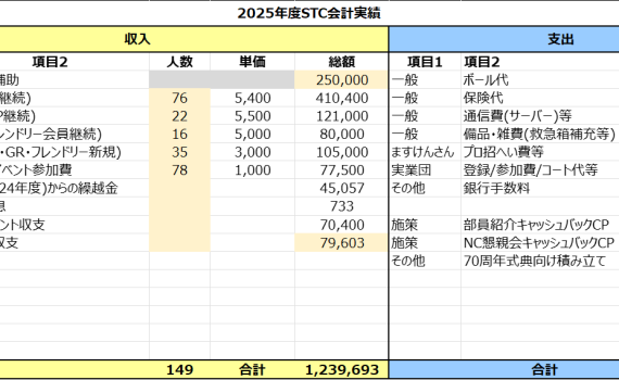 25役員会計の水谷です。 部費等の使用用途透明化のためにSTCメンバー向けに今年度の会計内容をご共有 […]